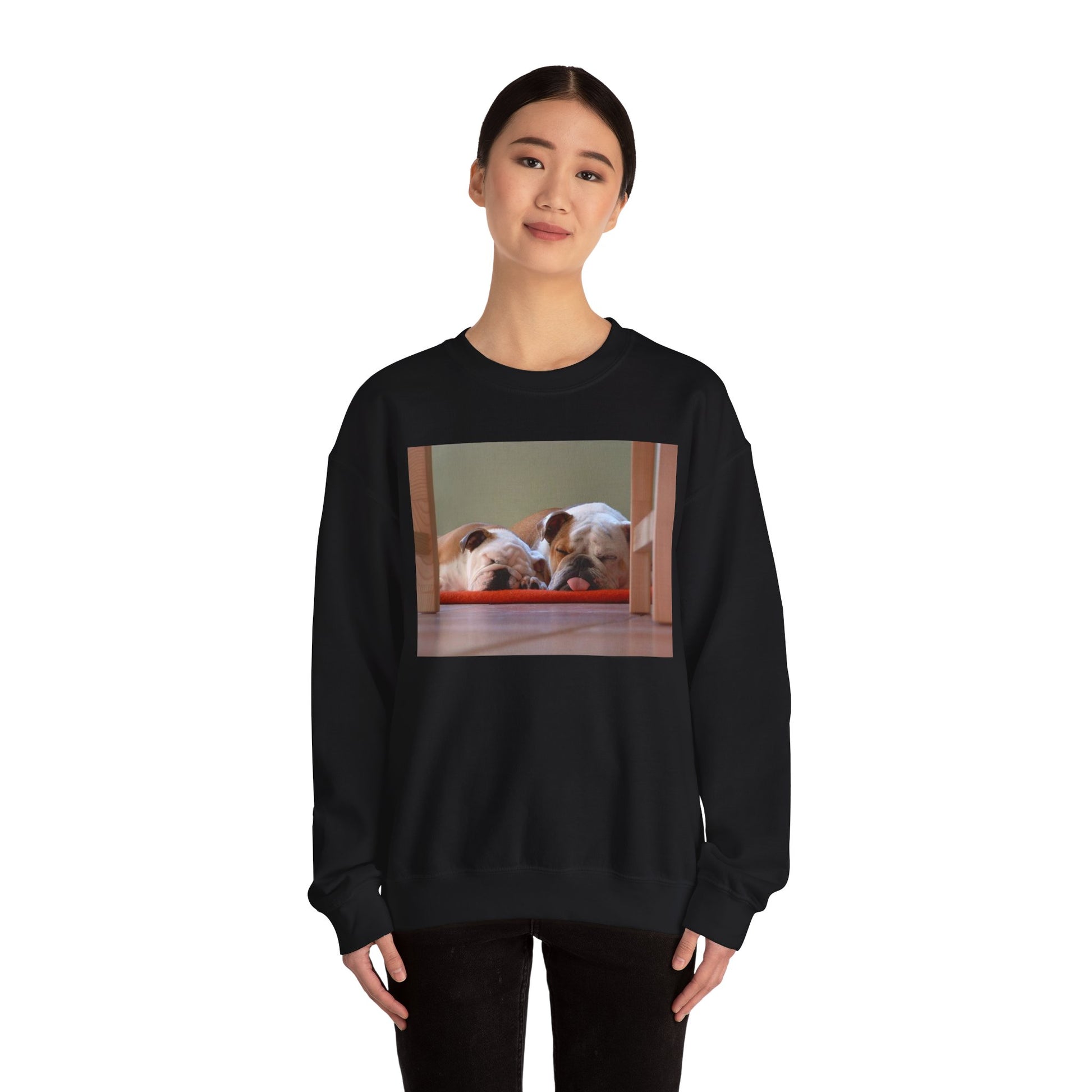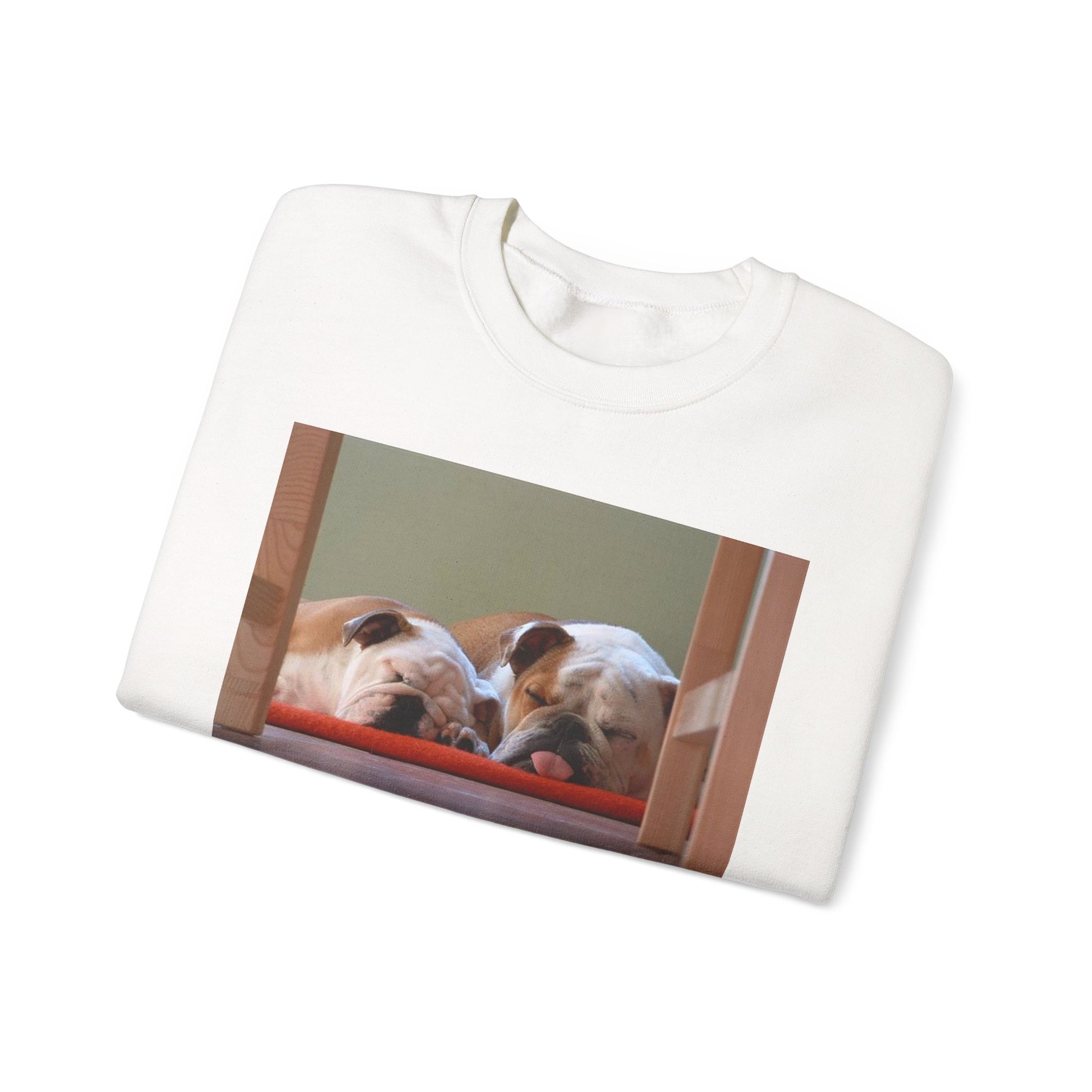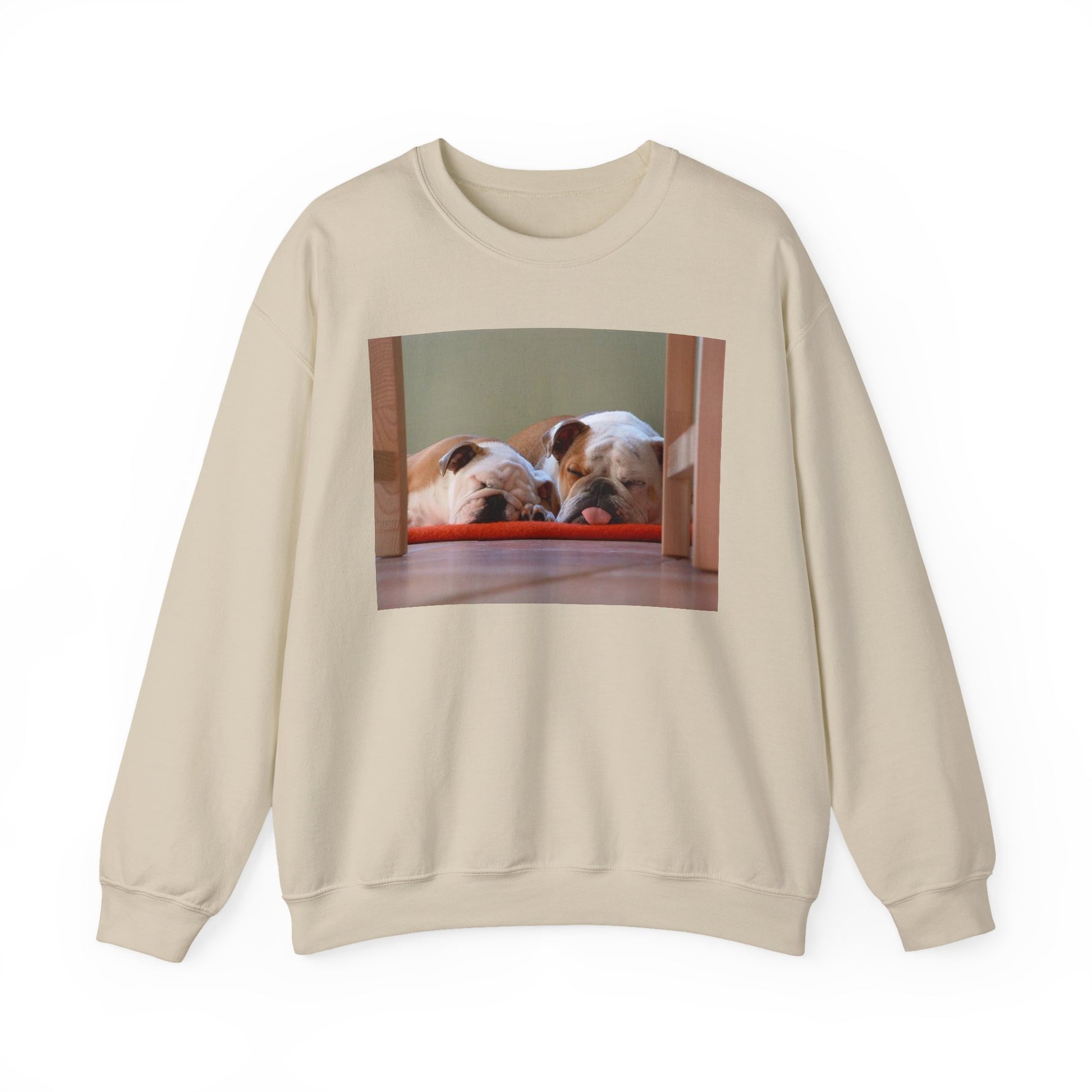 2 Sleeping Bulldogs Cozy Pet Lover Sweatshirt, Unisex Dog Sweatshirt, Cute Animal Crewneck, Gift for Dog Owners, Casual Lounge Wear