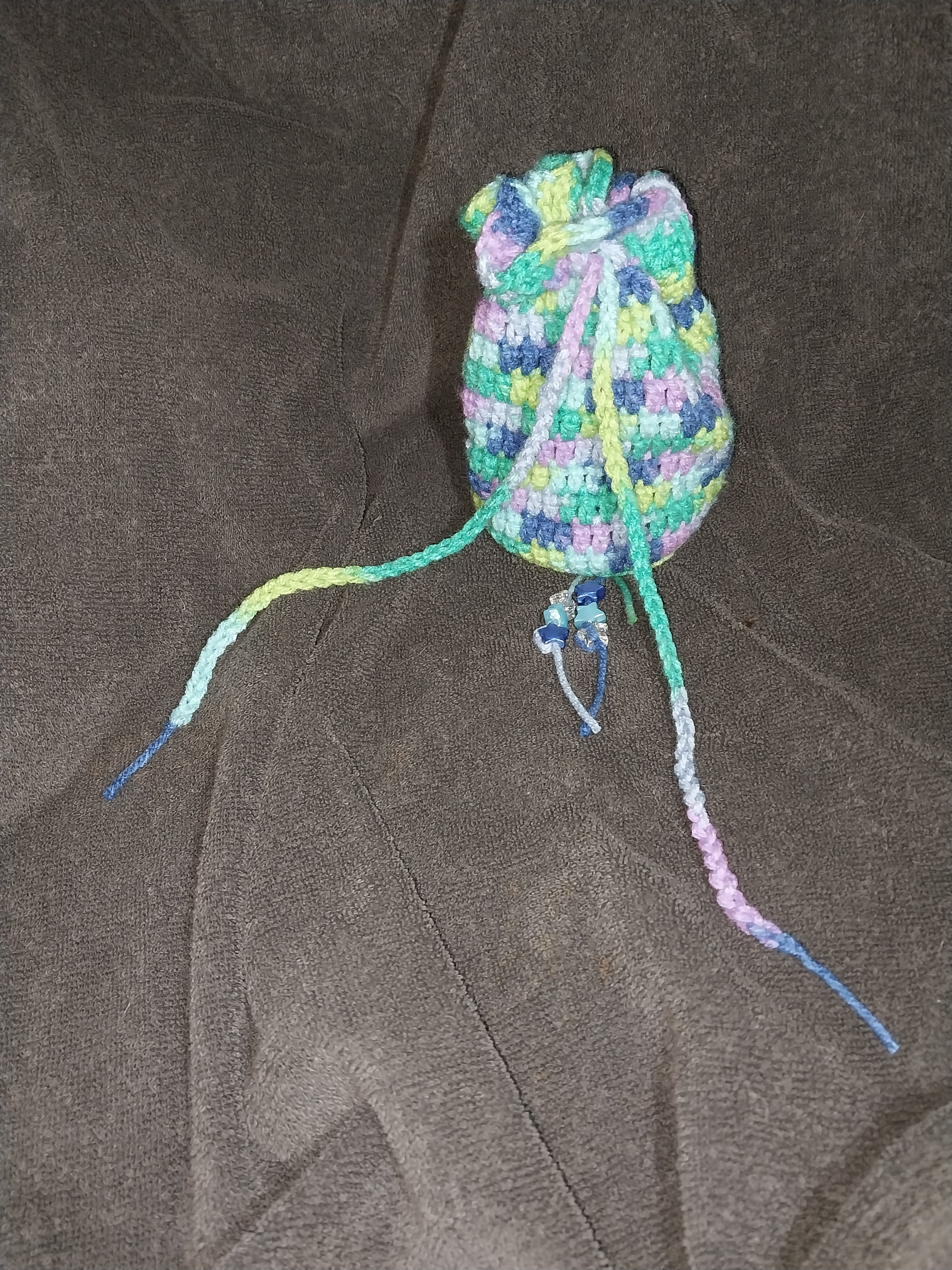 Went a little crazy with this one and added dangles on the bottom with star beads sewn on the ends of the yarn.