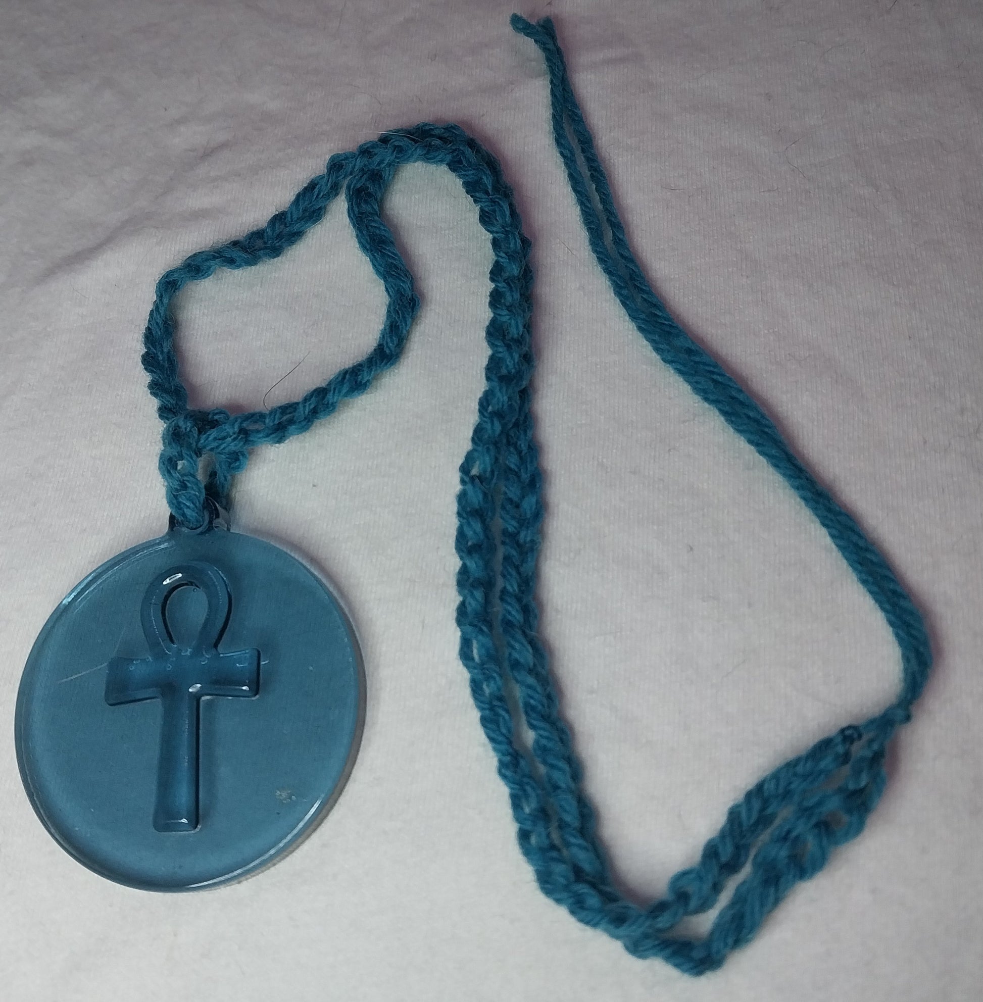 Egyptian Ankh On Disk with hand crocheted chain.