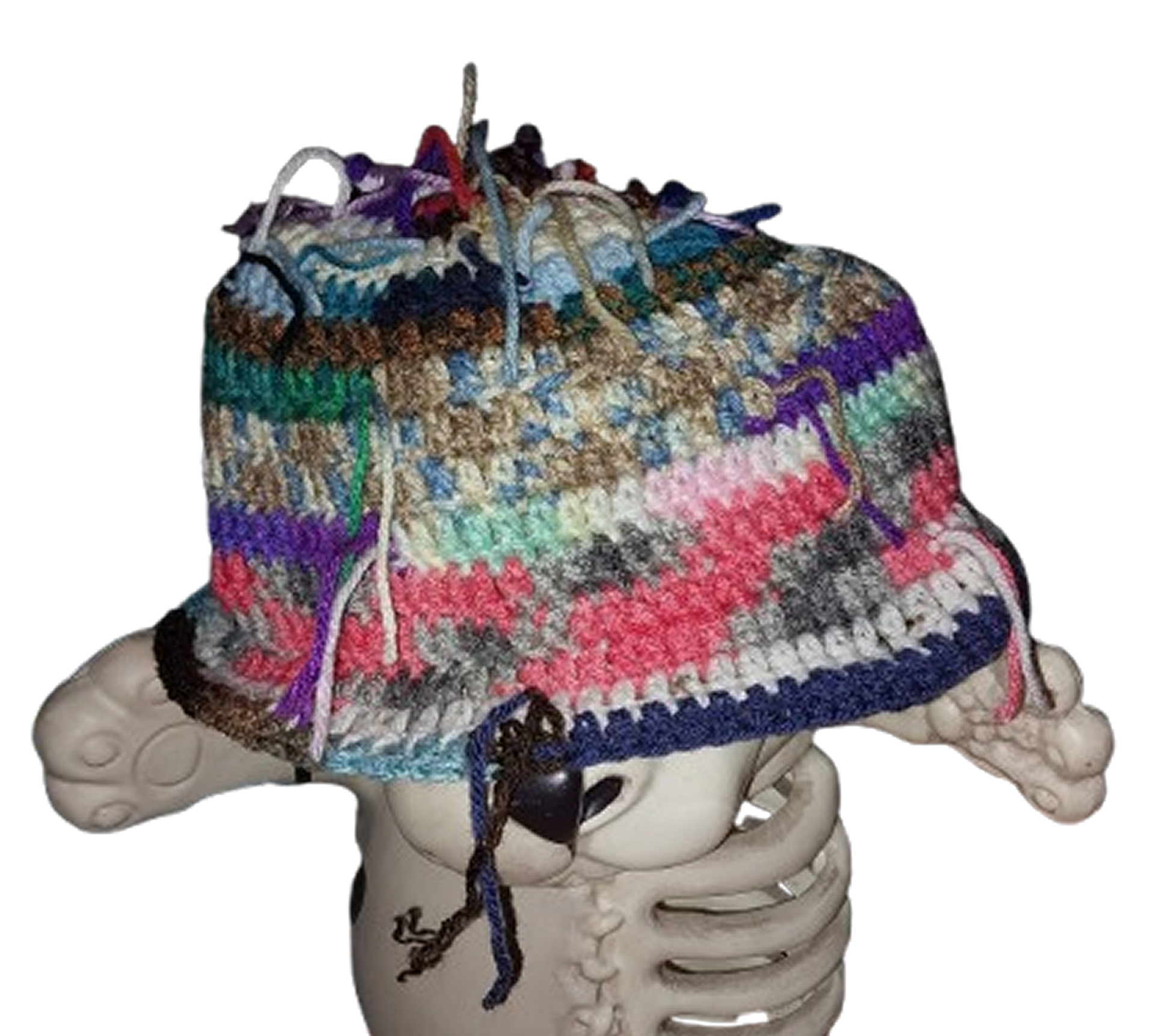 Hairy Striped Scraps Crochet Standard Bucket Hat OOAK
