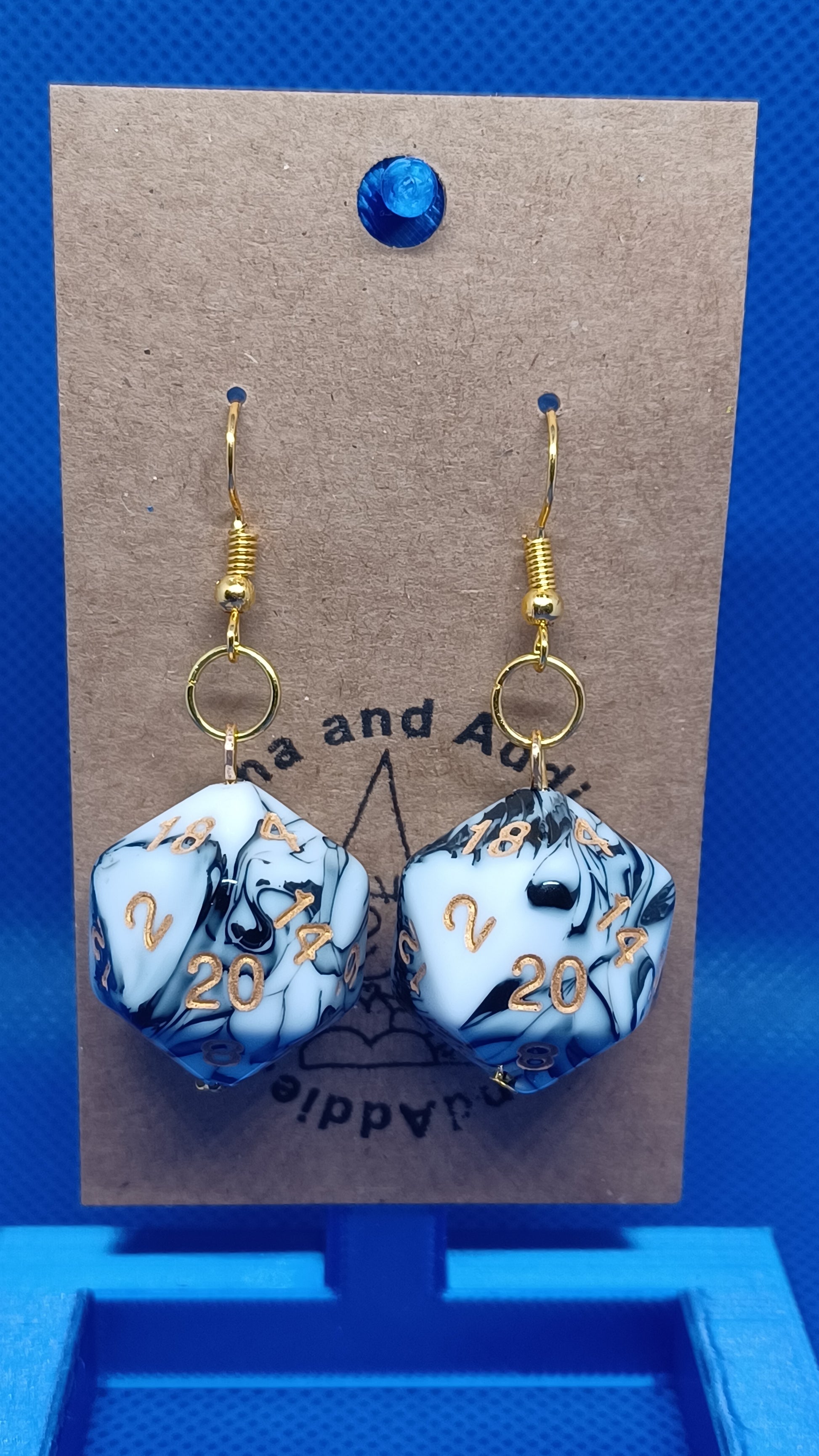 Natural 20 Earrings (black/white marbled)